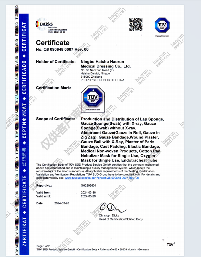 4 грудня команда експертів TÜV, провідної глобальної сторонньої організації з тестування та сертифікації, відвідає Ningbo Haorun Medical Supplies Co., Ltd. для дводенного комплексного аудиту системи управління якістю. Оскільки цей аудит є ключовим напрямком щорічної роботи компанії, цей аудит вважається важливим кроком для Haorun Medical для підвищення її міжнародної конкурентоспроможності та зміцнення позицій на світовому ринку.