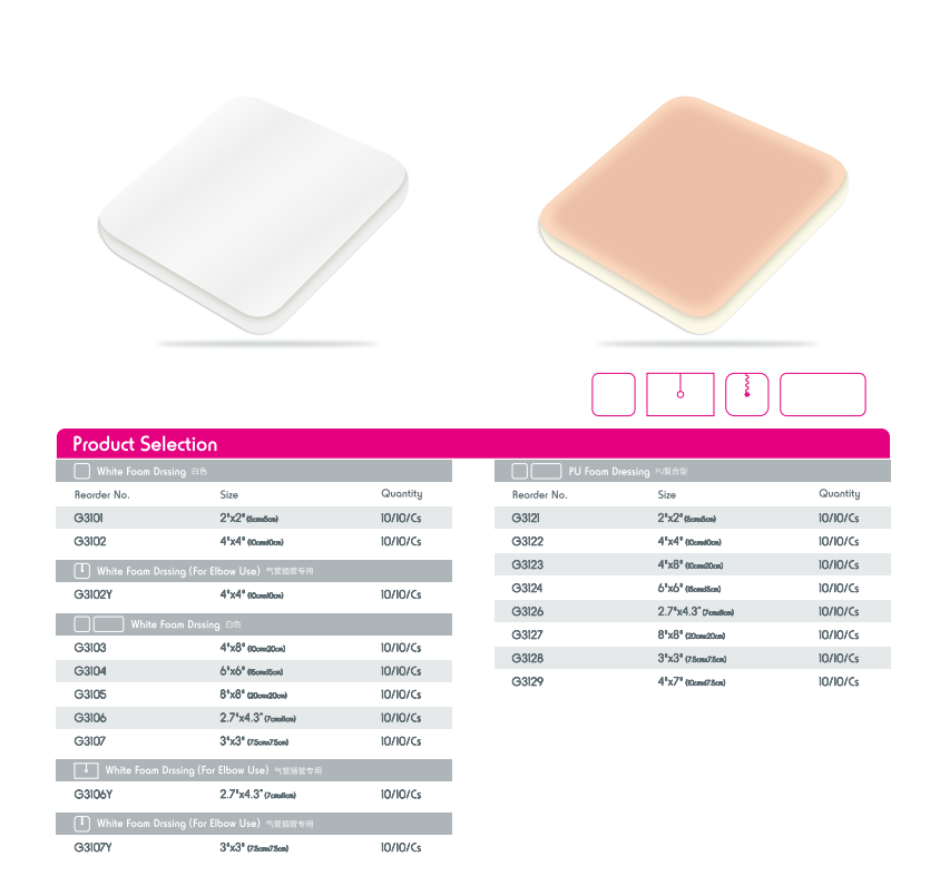 Пінопластові пов’язки – це м’які прокладені засоби для догляду за ранами, виготовлені з абсорбуючого пористого матеріалу. Їхня ключова перевага полягає в тому, що вони забезпечують дренаж середньої та важкої рани, зберігаючи належну вологість ложа рани для прискорення загоєння. М’яка піна забезпечує амортизацію та захист, а їх антипригарна поверхня дозволяє безболісно знімати.